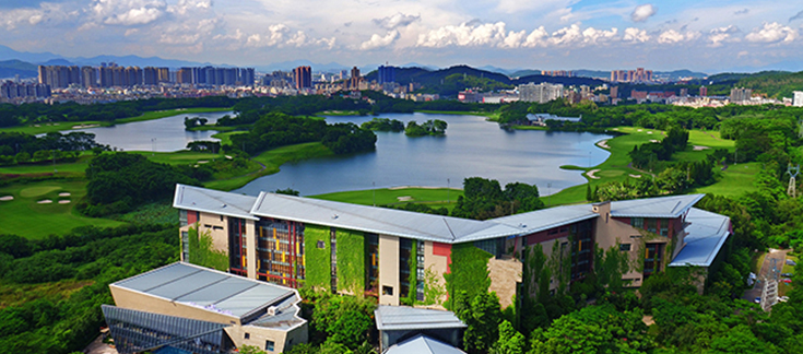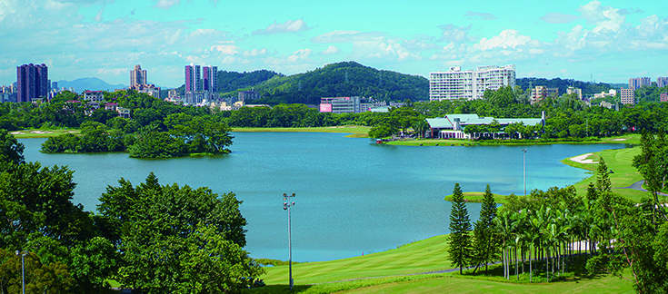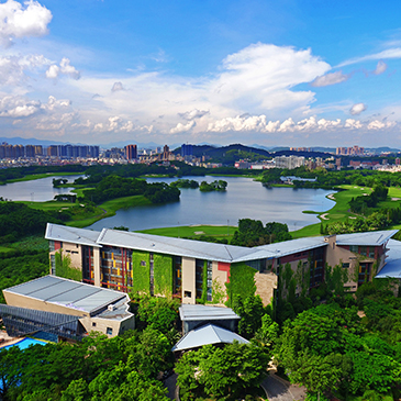 酒店背倚龍湖碧波瀲滟
